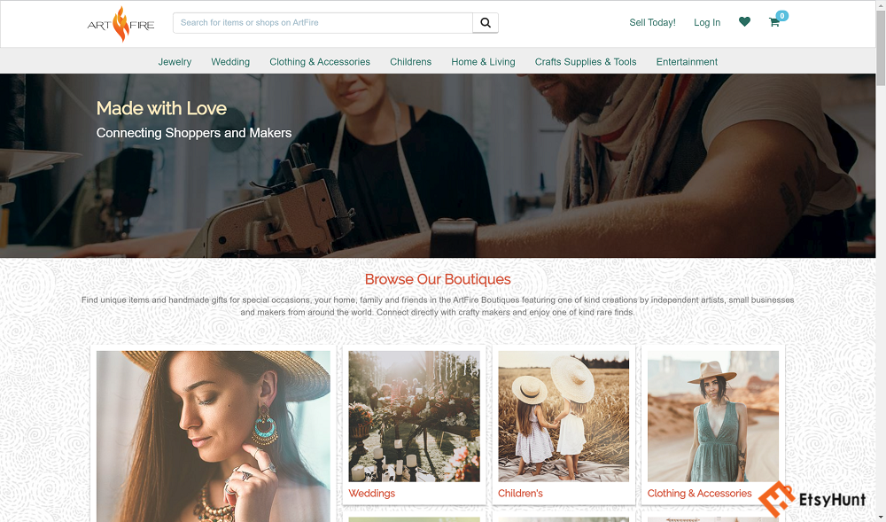 ArtFire was launched in 2008 by John Jacobs. The goal is to be a marketplace for crafters, artists, and more to come together in one online location. ArtFire has significantly less traffic than Etsy and isn't as well-known. But it is still a great marketplace to sell vintage items, craft supplies, and handmade products.