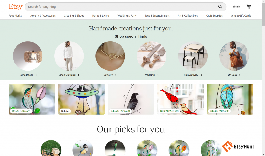 Founded in 2005, Etsy has swiftly blossomed into something like the holy mecca for crafters. This online marketplace serves to connect people from across the globe both online and offline through buying and selling products. You can sell handmade creations, vintage goods (at least 20 years old), and both handmade and non-handmade crafting supplies. Further, it's home to a millions-strong community of like-minded makers and indie DIYers.