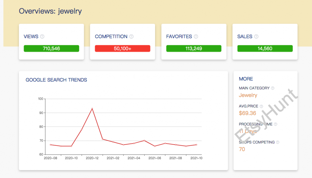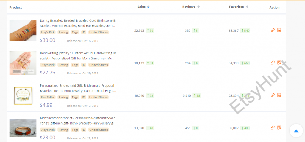 At present, there are more than 12.6 million jewelry products on Etsy, and from EHunt, we can also find Jewelry products have increased recently, The Favorites of bracelets has risen very fast recently. It is not difficult to rule out that buyers are preparing in advance for the arrival of Black Friday.