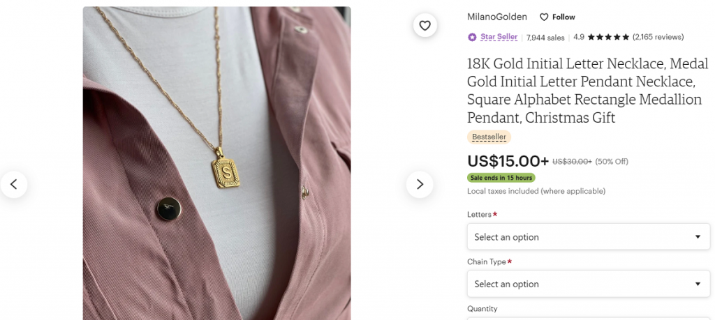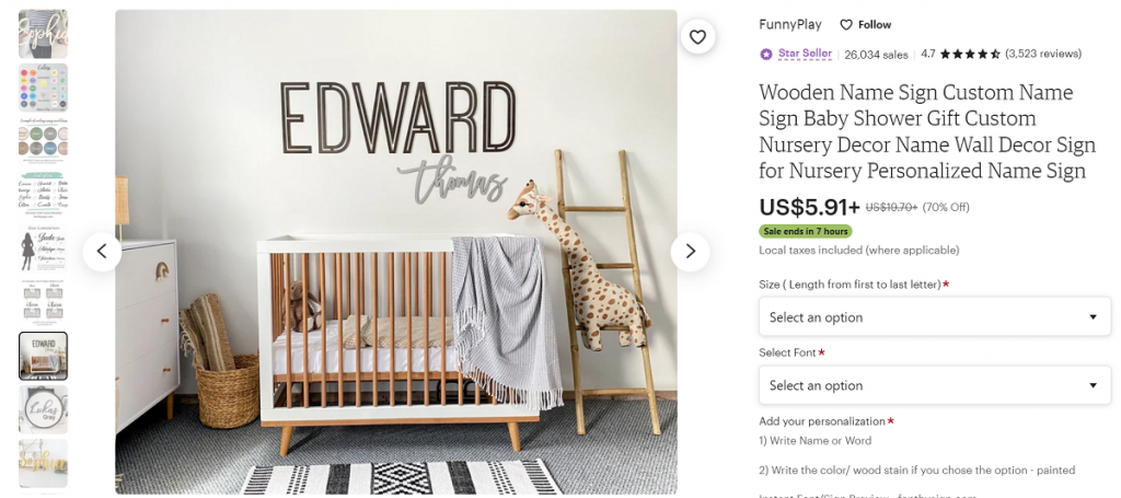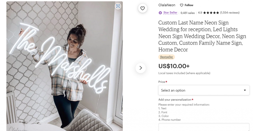 - Its price starts from $23 and changes based on the letter count. While weekly sales are 111, total sales of the item are about 8.600. Besides the number of 433 reviews, it has a considerable number of 24.670 favs. This store also has Etsy Star Seller Badge