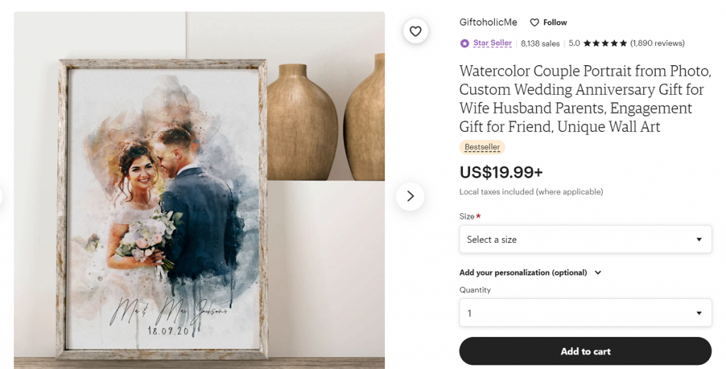 - The next Etsy Black Friday idea is portrait. This customized photo portrait is ideal when it is prepared with the name on it. It is a perfect gift idea for spouns, for anniversary, a shining present for best friend's wedding, engagement gift for loved ones and many more.