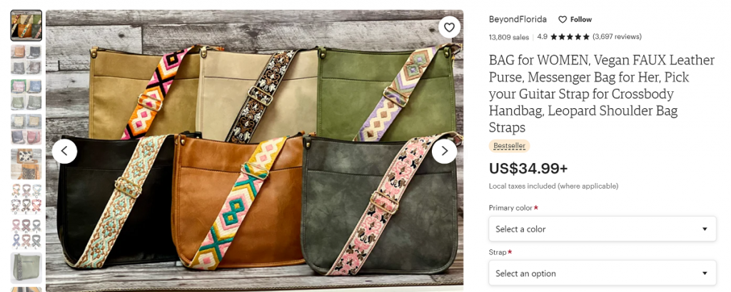 - The price for the item is $34.99 and sales go up to 97 weekly. Total sales are nearly 2.000 and it has a good record of reviews and favs.