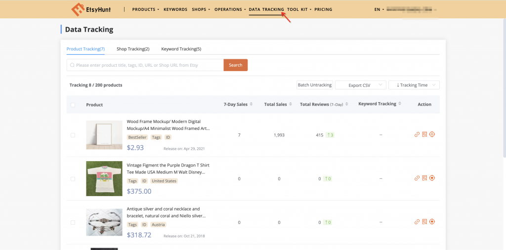 By utilizing the "Data Tracking" feature, you can effectively learn from your competitors, helping you understand the Etsy competition and giving you the tools to stay ahead.