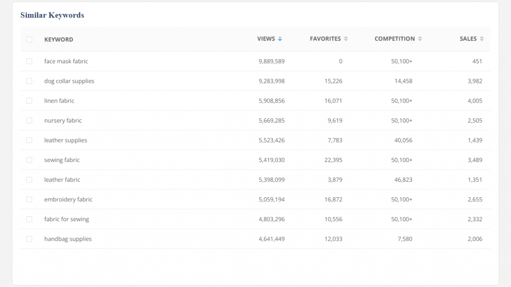 For example, “face mask fabric” counts with almost 10 million views being the most viewed of all. On the other hand, “linen fabric” has the highest number of monthly sales with 4005.