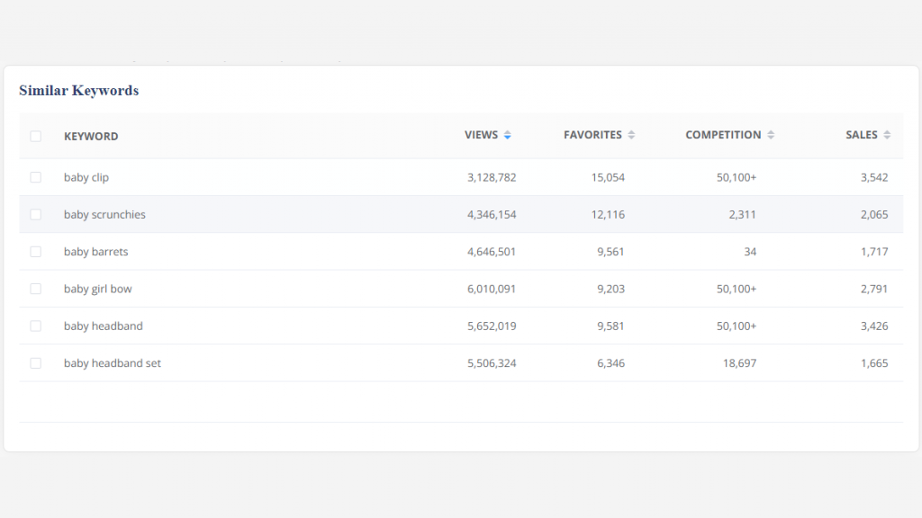 For research purposes, we’ll analyze just the “baby bow” keyword, but we will look into other accessories as well. This way you can analyze other related keywords depending on your needs!