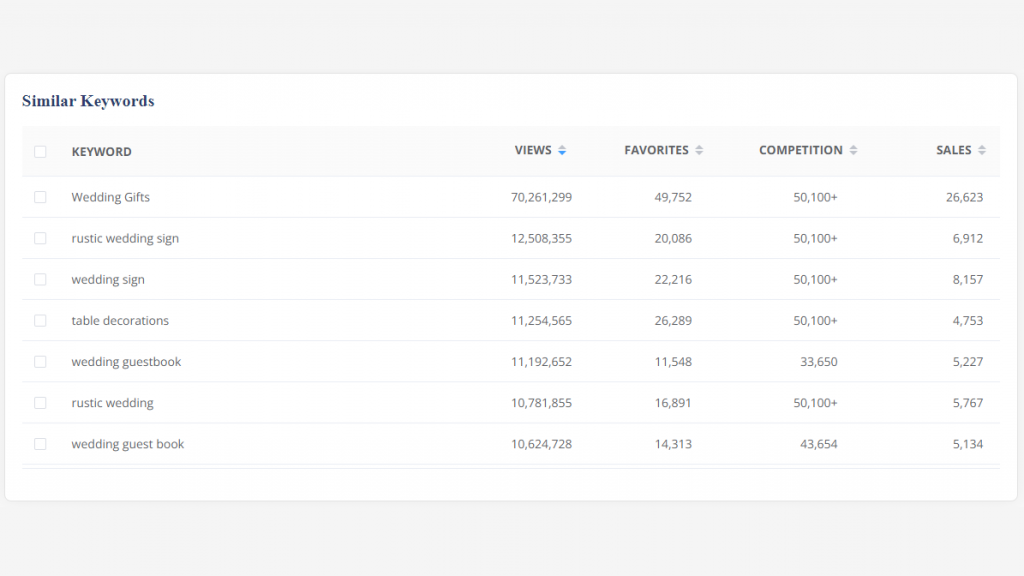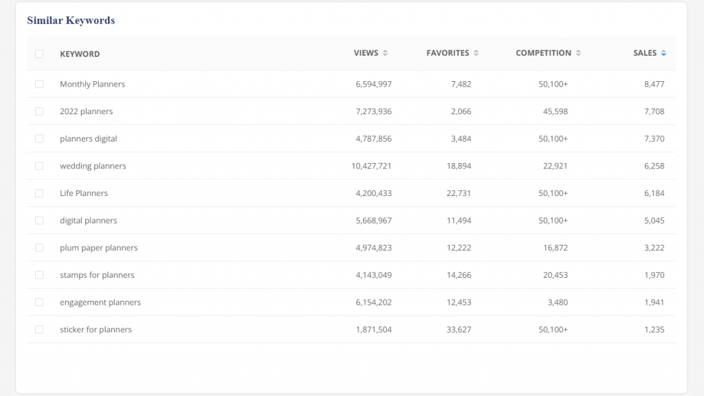 As we can see, monthly planners, 2022 planners, digital planners, and wedding planners are at the top of sales. Yet specifically wedding planners have way fewer competitors overall, without a doubt something to consider.