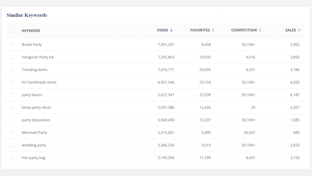 What we can extract from this, is the fact that party items are one of the most searched keywords on Etsy, even specific themed items.