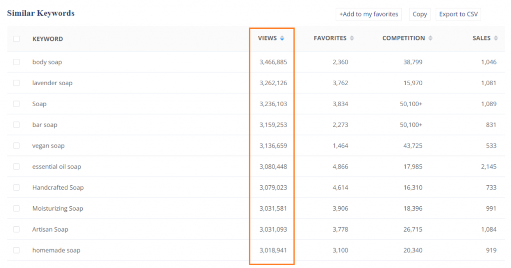 Just for the nonspecific keyword “soap”, views are over 3 million, and that number of views is the average for soaps in general on Etsy as we can see here: