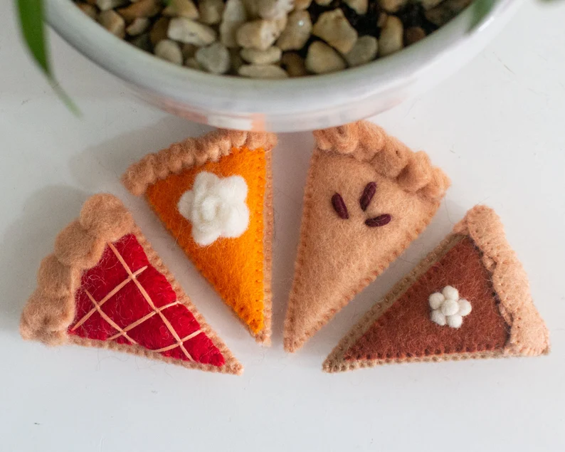 This festive felt pie will entertain and educate your children this Etsy Thanksgiving Day. Use it to keep your and your guest's children entertained during pretend play. This realistic-looking fake pie is a fun way to help your children's minds develop.