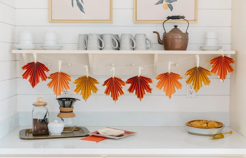 When Fall knocks at your door it is better to celebrate it. And what is a better way to celebrate than decorating your house with this beautiful harvest leaf paper banner with gold foil accents for Etsy Thanksgiving Day.