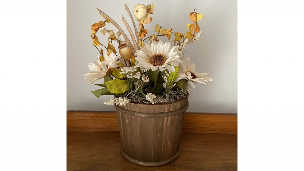 This silk flower arrangement is ideal for any Thanksgiving table or decoration! It is inspired by fall flowers and will make a statement in any room you choose to put it in. The florals are displayed in a lovely rustic wood basket.