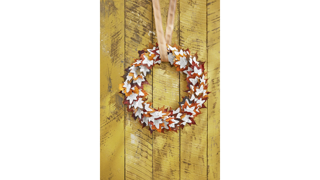This will look great on any wall of your choice in your home as a Thanksgiving decoration. Autumnal-colored items in orange, green, brown, yellow, and burgundy were used to create this piece.
