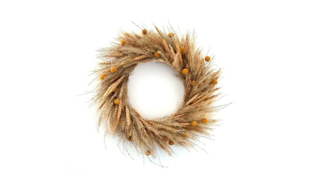 This seasonal embellishment can be used to dress up plain chair backs. A dried wheat wreath will give a welcoming beacon to any home, as bright and beautiful as summer sunlight. Wheat is also a symbol of abundance and generosity.