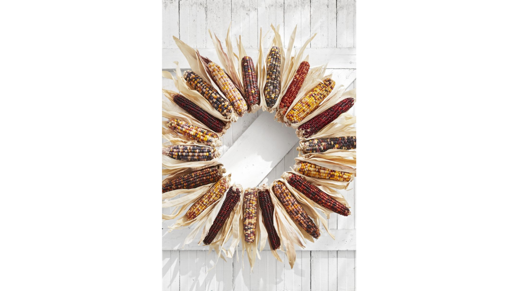 If you want a seasonal wreath that is both beautiful and simple to make, try this simple version made entirely of Indian corn.