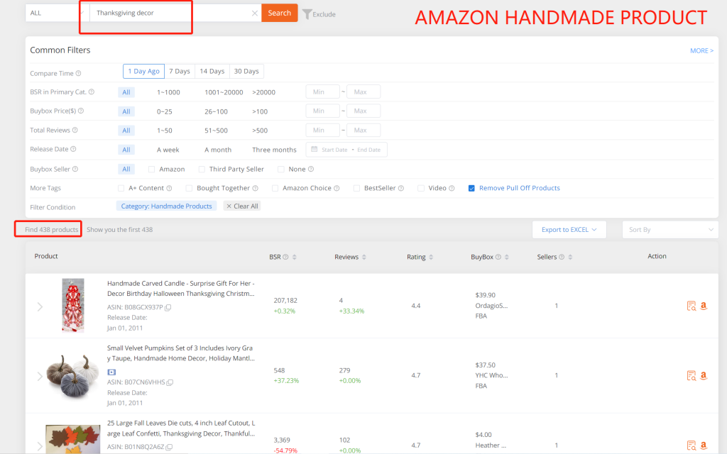 There are 438 products for “Thanksgiving decor” from Amazon Handmade Database Tool.