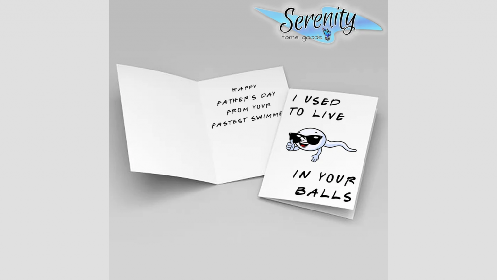 The outside text says “I used to live in your balls”. The inside text reads "Happy Father's Day From your fastest swimmer", and you have the option to add custom text inside the card.