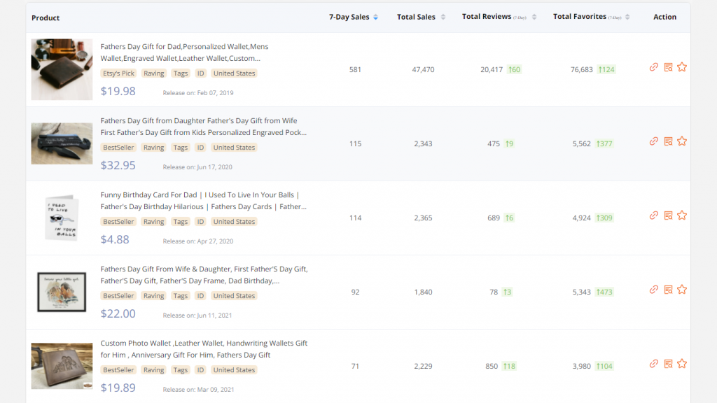 This one is perhaps the fastest-growing Father’s Day gift, being listed just a couple of days before, it accumulated 115 sales per 7-days.