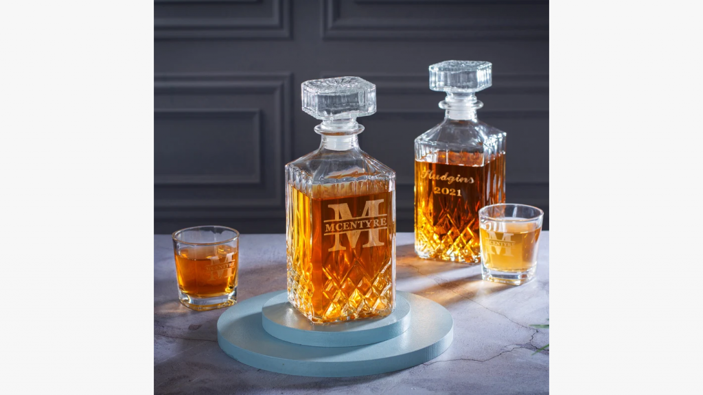 This engraved whiskey decanter kit is the perfect gift for a dad who enjoys whiskey. Customized with the name of your father, this whiskey decanter, and matching glasses will be shown with satisfaction for years.