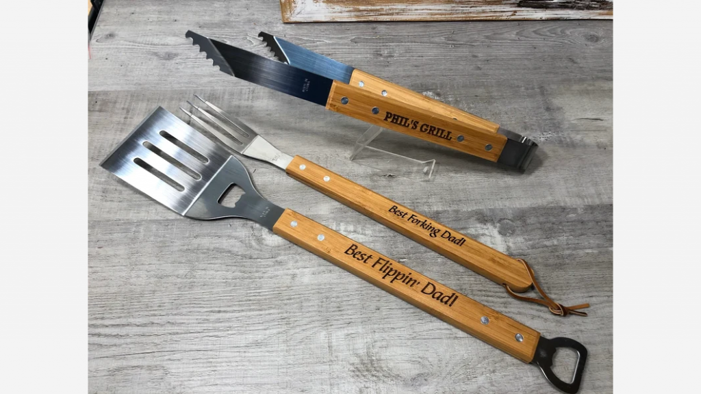 These BBQ grilling tools are great for a BBQ dad! They can be personalized by adding any short message or engraved that you like.