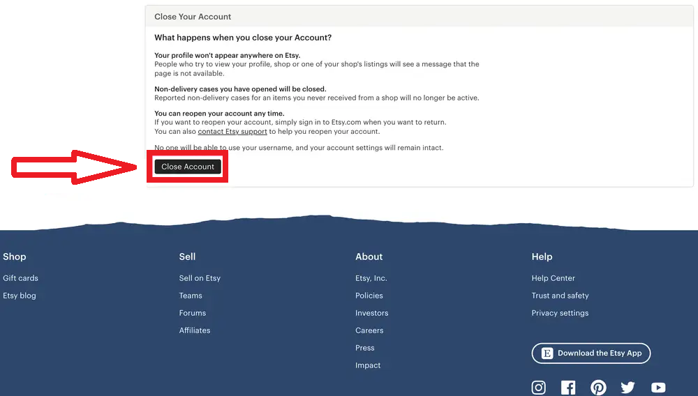 Please keep in mind that depending on if you are a seller or buyer on Etsy, it will take some time to delete the information for good. All the open issues have to be resolved successfully if the deletion process is to start right away.