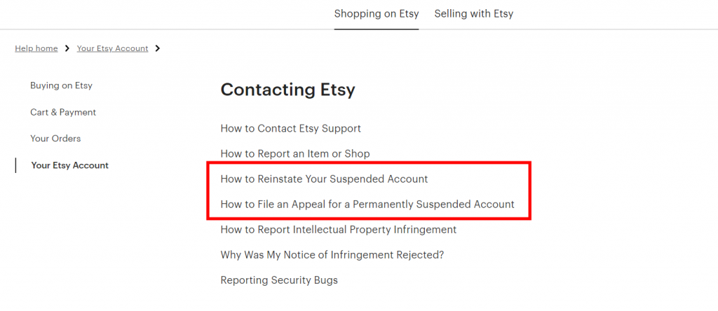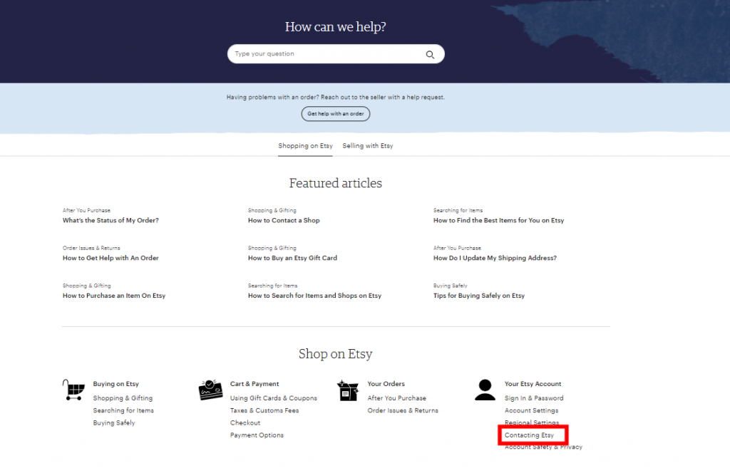 - Scroll down to "Your Etsy Account" and click on "Contacting Etsy."