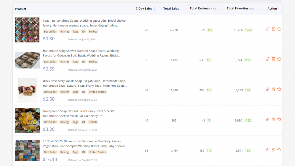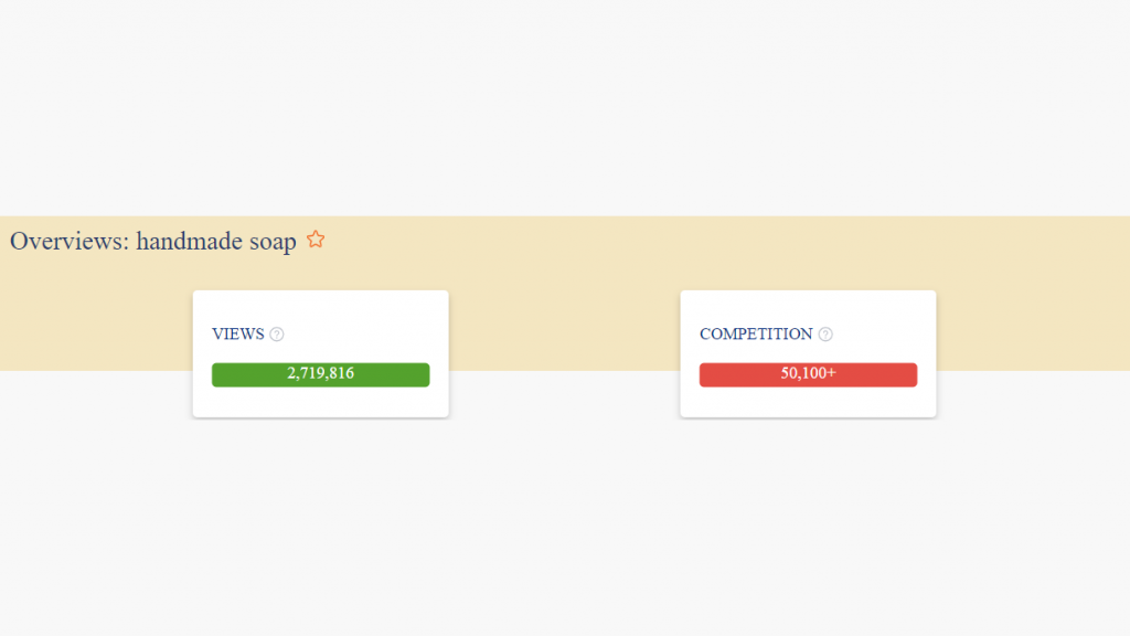 To help with this, you can rely on EHunt’s tools, performing a quick keyword search we can see how competitive is that product. For instance, we search for handmade soap: