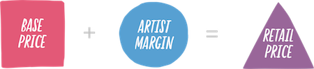 It is of vital importance to an artist on the platform to get to know how much they earn for each item sold. So it comes down to three important terms: Base price, artist margin, and retail price.
