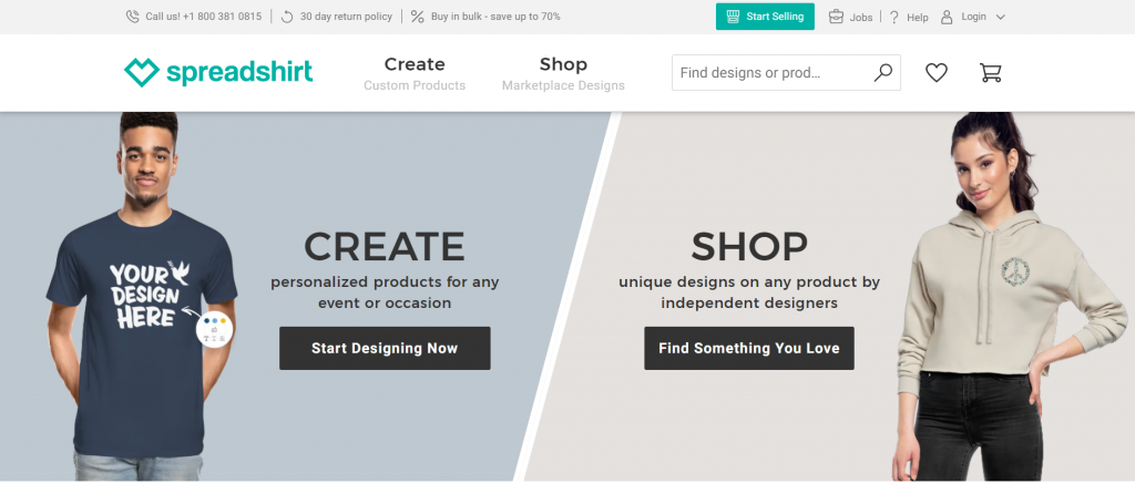 Creating or shopping? It is up to you on SpreadShirt. Unique styles are a common thing here and you will definitely be more than happy to select the items just right for you. You can also check out some great sales on baby clothing and couple of gifts.