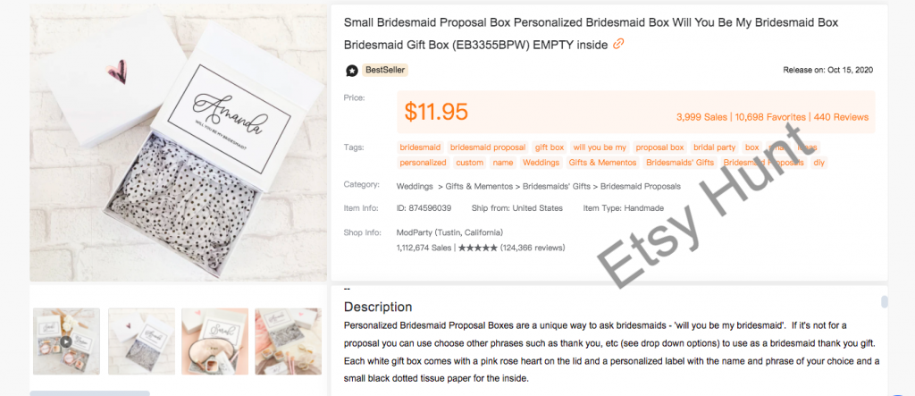 Etsy Hunt provides the best products for us, this is an empty bridesmaid proposal box. This is a personalized bridesmaid proposal box, it is suitable for brides to put some little gifts inside.