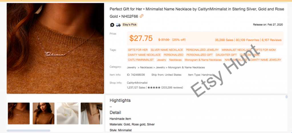 According to data from EHunt, there are currently at least 26.83 million products on the Etsy platform. Jewelry products are the most popular, followed by stickers, greeting cards, and wedding products. Today, we gonna some Etsy ranking products to analyze why they can become top shops!