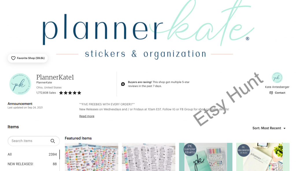 The seller with the most accumulated orders in the Etsy store at this stage-plannerKate1. Located in Ohio, the USA, it is mainly engaged in stickers.