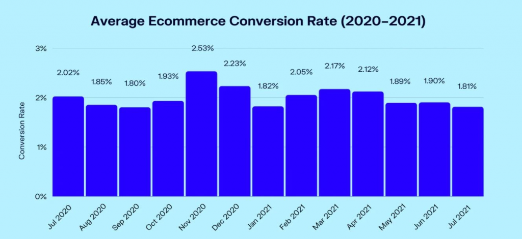 In order to understand what is a good conversion rate on Etsy, you should analyze the e-commerce industry’s conversions. As you see in the graph below, the Industry standard does not exceed 3%.