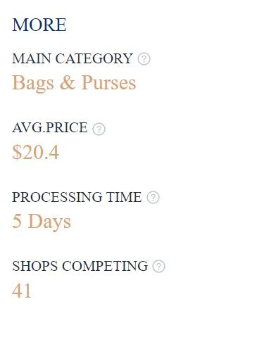 - Processing Time: Average Processing Time for the top 100 shops ranking for this keyword.