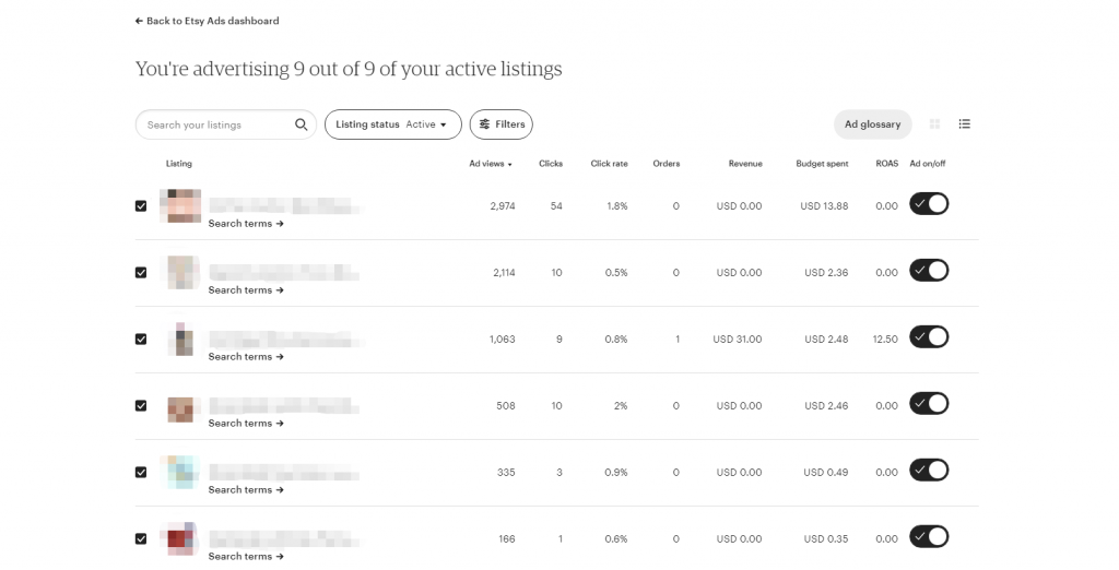 According to the actual display volume, click-through rate, ROAS, and other key indicators of Etsy advertising, we can correspondingly adjust the listings to maximize the advertising effect.