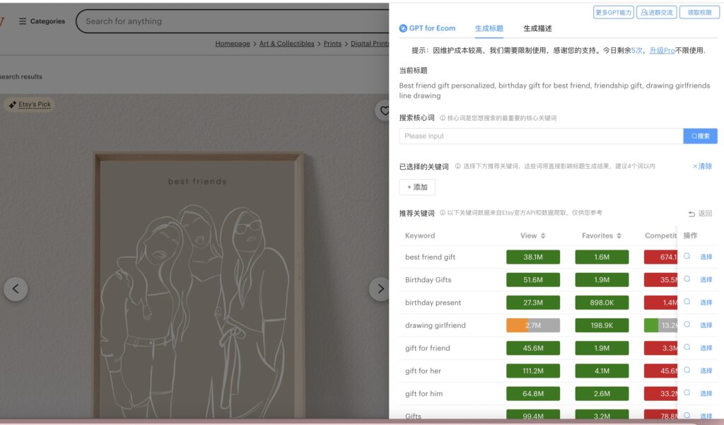 - The extension will automatically read your current product information and use ChatGPT to generate a new title or description, which will be displayed in a popup window.