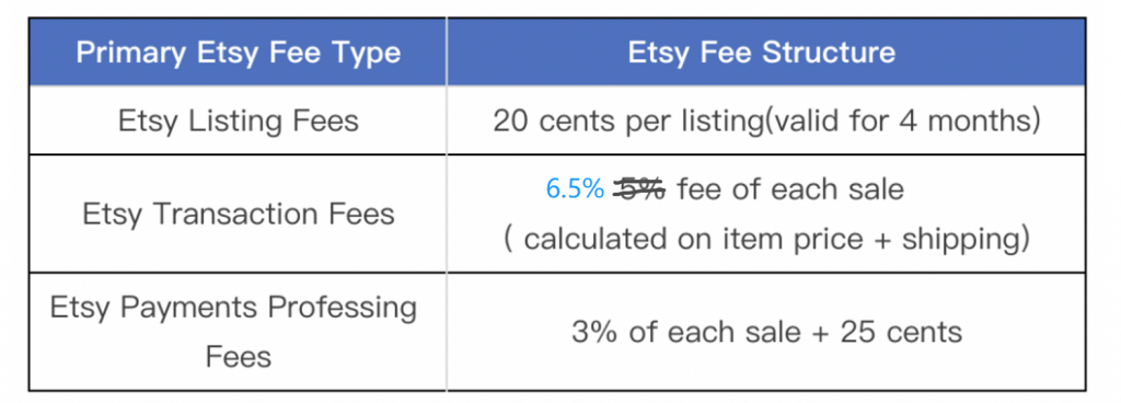 You can take a look at an overview of 3 Primary Etsy Fees before reading below: