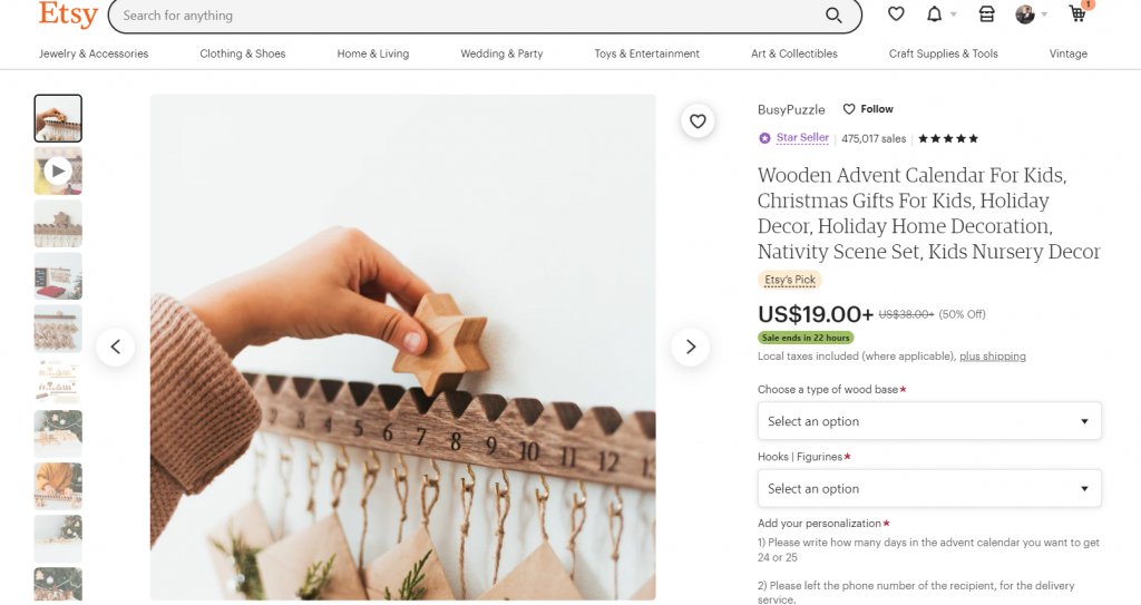 The first item on our list is this amazing Wooden Advent Calendar. This item has a total of 7266 sales. It also has 374 reviews on Etsy.