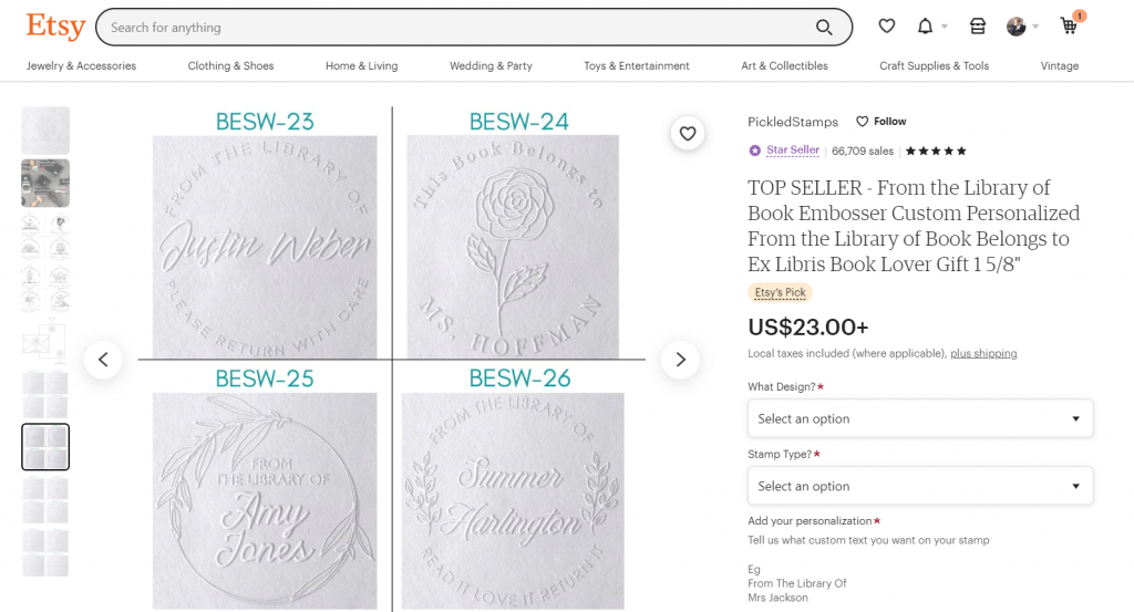 So, selling a customized book embosser is another lucrative Etsy business idea.
