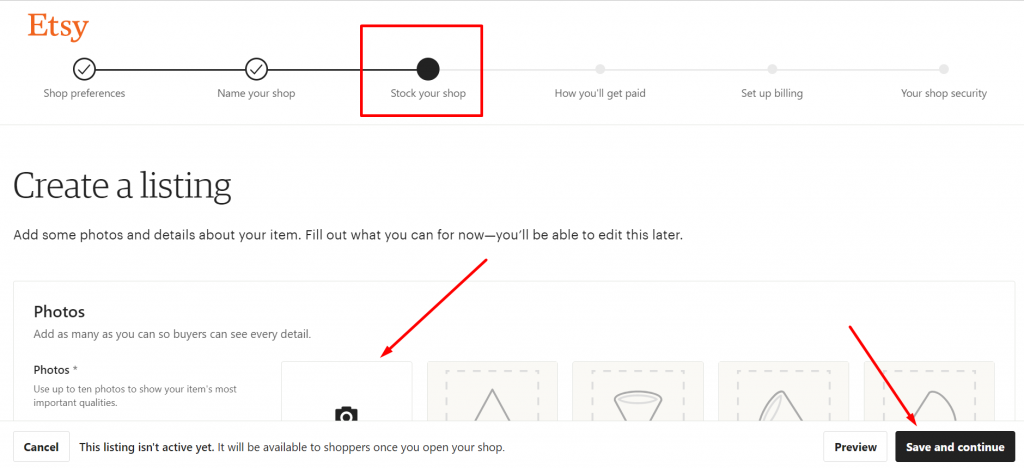 When creating your Etsy business, you must create at least one product listing. You need to pay 0.20 USD per listing which will last 4 months.