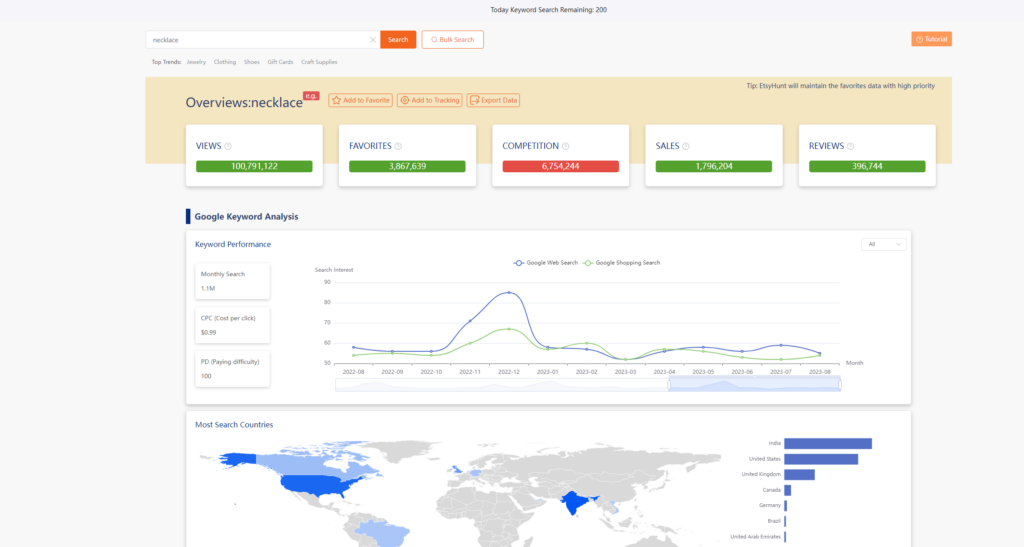 EHunt offers many other features and tools to assist sellers with market research, competitive analysis, product optimization, and more. By fully utilizing these features, you can better understand market demand, optimize your product strategy, and achieve better performance on the Etsy platform.