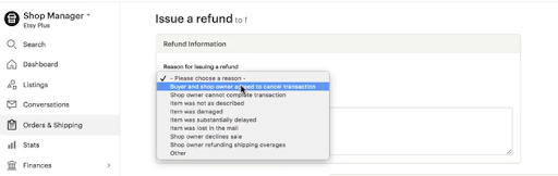 Etsy Payments method seems the most convenient one as the transactions take place immediately. Yet, other payment methods such as PayPal require the same refund payment system. The seller can view canceled orders Orders & Shipping under the Complete section.