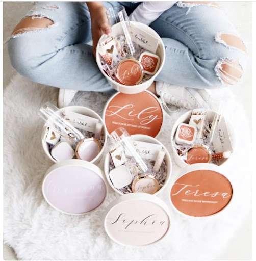 These Bridesmaid Proposal Box Gift Sets are a unique way to show your passion and love accompanied by this beautifully taken photo. The details show valuable crafted items presented in accordance with the image.