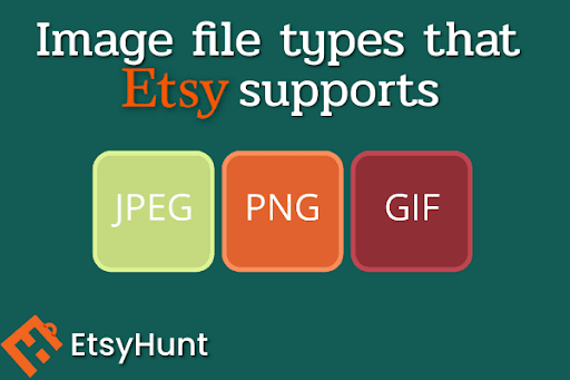 There are only three types of images to be accepted by Etsy, namely: .jpg, .gif, or .png formats. It should also be noted that animated .gif files or transparent .png images are not acceptable on the platform. In the case of a transparent part on an image, it will be black.