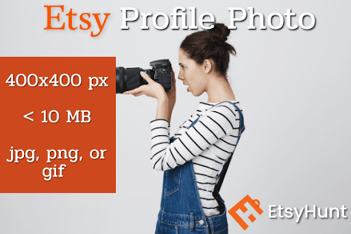 400 x 400 px is the size that Etsy recommends sellers to use for profile images. While uploading a profile image, it would also be a great idea to provide other sellers and potential buyers with a bio by adding what is special about you on the page.