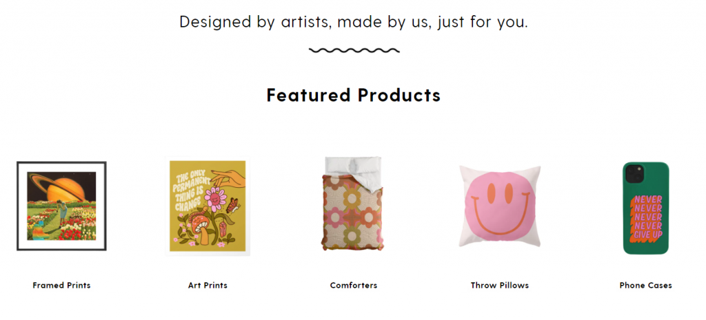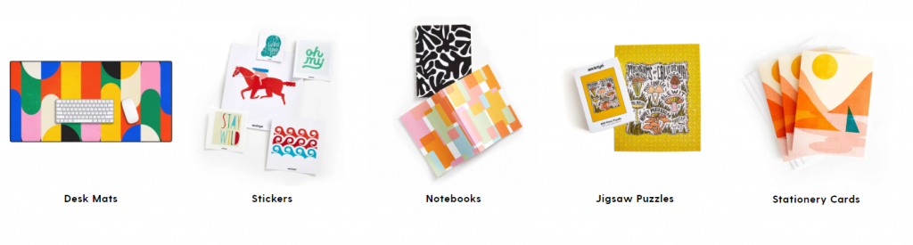 Any art product such as wall pictures, furniture, lifestyle articles can be published and sold. Its friendly atmosphere for newcomer artists is also interesting since it offers a huge base of people who already buy many products there.