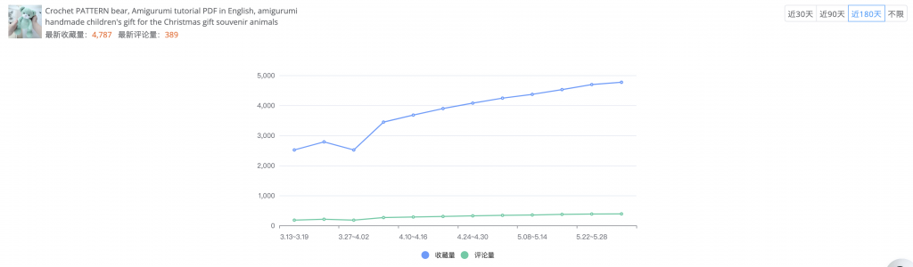 使用此关键词的Top100热销商品的总收藏数,数据来源于Etsy,每日更新。