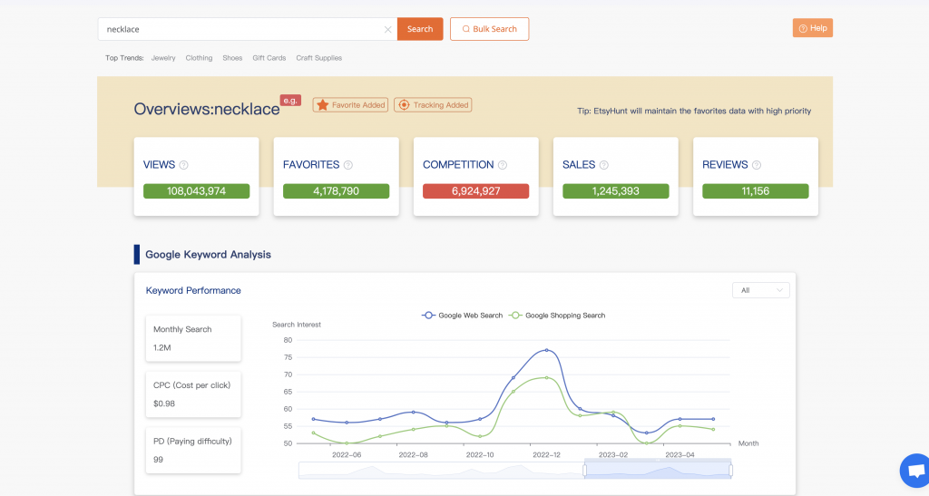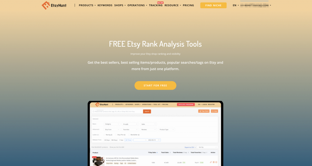 Upon completing the registration process, your EHunt account will be activated, granting you access to comprehensive market data and insights. Analyze sales trends, track your Etsy store rank, and gain a deeper understanding of the Etsy business model. By utilizing this information, you can adjust your pricing strategies, optimize your product listings, and effectively position your Etsy store within the competitive marketplace.