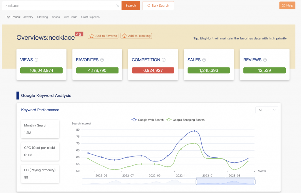 Now, let's introduce the key features of EHunt that will help you comprehensively analyze Etsy product data, stay on top of market trends, and improve your operational efficiency.