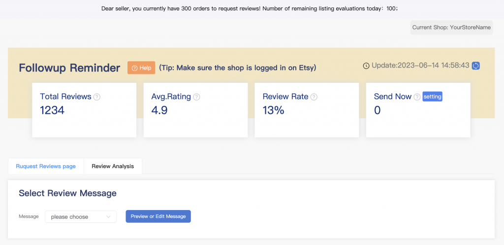 If you need to utilize EHunt's shop-related features, such as listing optimization and intelligent review requests, you'll need to add your Etsy shop to your EHunt account. This enables you to effortlessly analyze and optimize your store data and take advantage of EHunt's suite of features.