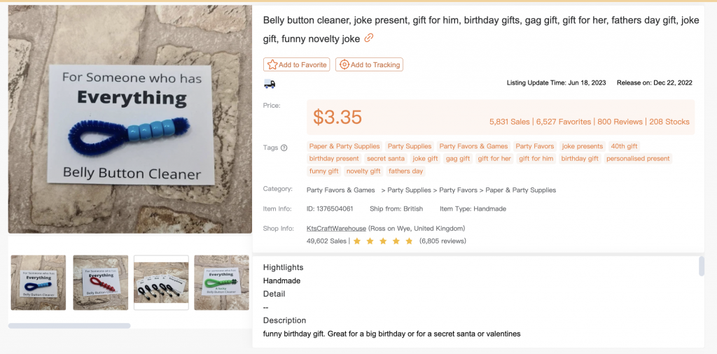 - Display of product type: Helping you determine if the product is handmade, for example.